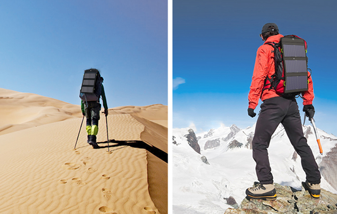 Ovaj prijenosni solarni punjač pogodan je za mnoge primjene. Možete ga koristiti na kampiranju, dok putujete u kamper kombiju ili na planinskoj ekspediciji. Nakon presavijanja proizvoda ne zauzima puno prostora - lako ga možete uklopiti u putnu torbu. Štoviše, uključene metalne kuke (karabineri) omogućuju vam da ga pričvrstite na ruksak. Iskoristite ovo rješenje kako biste stekli više prostora za spakiranje stvari i uživanje u udobnosti korištenja!