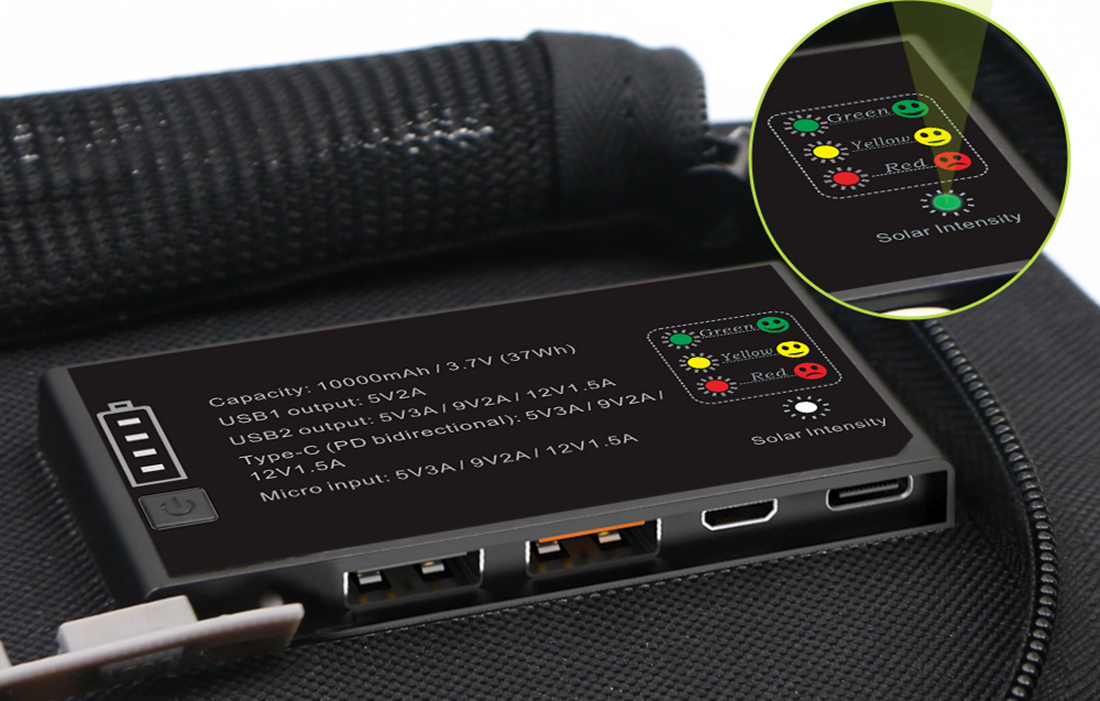 Ono što Allpowers punjač razlikuje od ostalih uređaja te vrste je njegova ugrađena 10000mAh powerbank, koja tijekom dana skuplja energiju kako bi vam služila danonoćno. Također ga možete priključiti u zidnu utičnicu (2A). Čak i ako zaboravite napuniti telefon ili prijenosno računalo prije nego što padne mrak, još uvijek možete to učiniti noću! Proizvod također prati intenzitet sunčeve svjetlosti i omogućuje vam da znate s obojenim svjetlima - zelenim, crvenim i žutim.